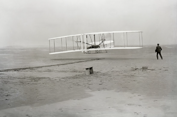 And chances are you have seen the short video of their first successful flight on the windy beach at Kitty Hawk, North Carolina with Wilbur piloting the machine and Orville running alongside it.